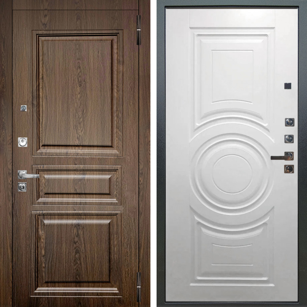 Полотно - два листа металла, Замковая зона усилена металлическим бронепакетом. Ответная часть замковой зоны усилена стальным швеллером,что сводит к минимуму попытки вскрытия двери методом отжима. Бронепластины на коробе в зоне входа ригелей замка. 2 специальных армированных прута внутри конструкции надёжно защитят дверь от вскрытия килечным ножом.