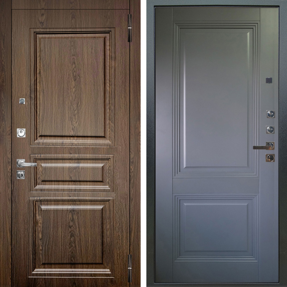 Входная дверь Termo-Door с терморазрывом и утеплением: внешняя отделка Премиум Геометрия Дуб, внутренняя отделка Марсель Grey софт.Толщина полотна 95 мм, цилиндровый замок, доставка и установка в Москве и МО, гарантия 1 год.