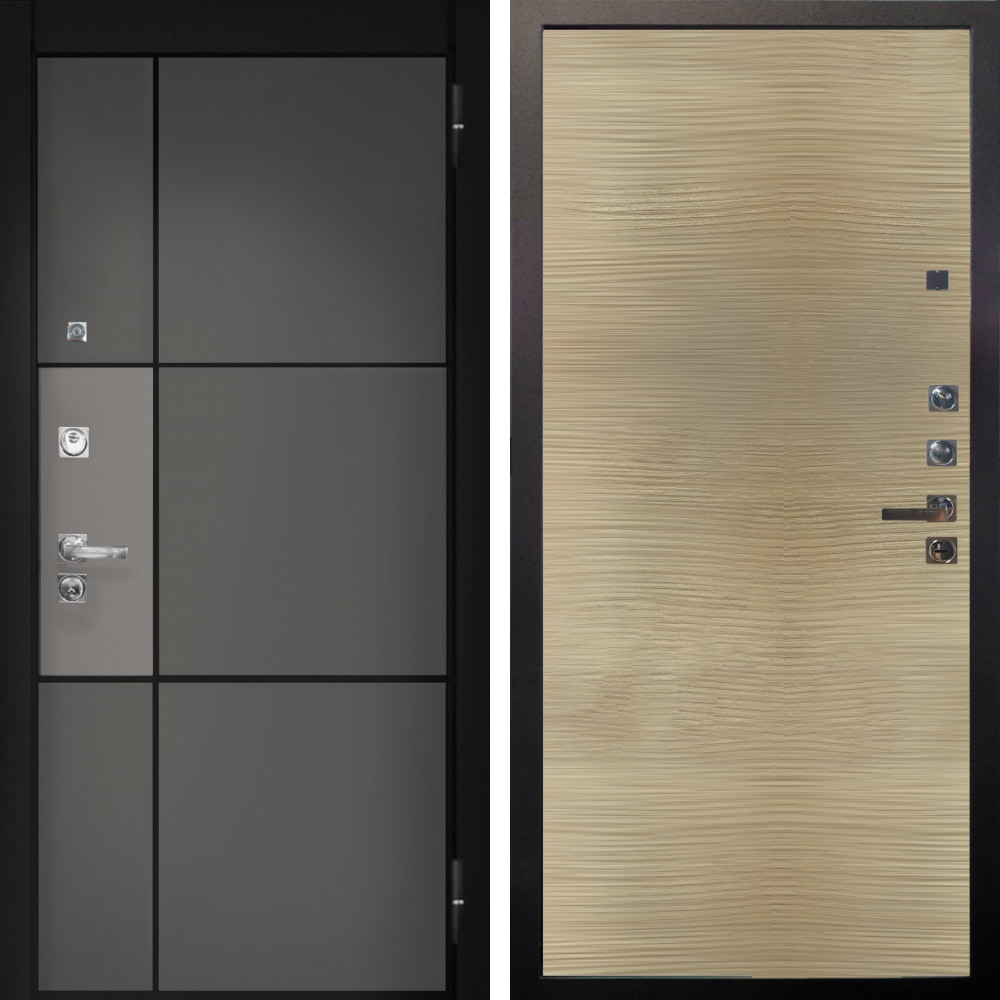 Входная дверь Аргус ЛЮКС 3К ПРО Мичиган Силк титан вставка силк муссон + Элегант Дорс светлый горизонт
