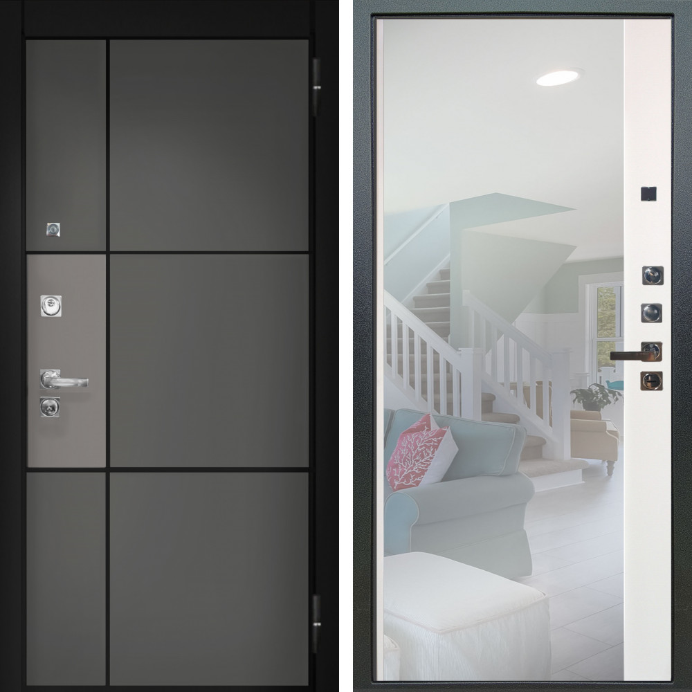 Входная дверь Termo-Door Премиум Винорит Grey - Зеркало Триумф Белый софт