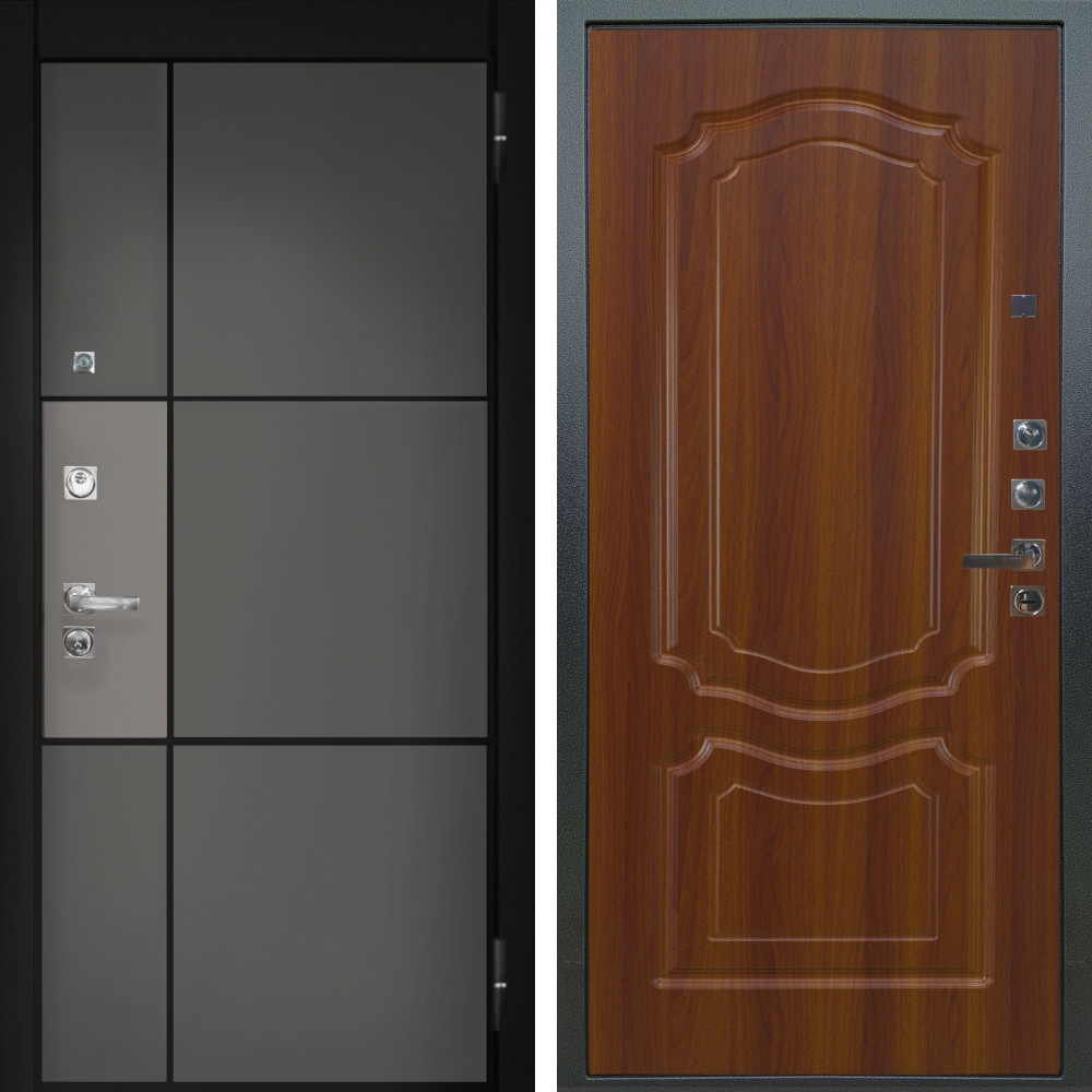 Входная дверь Termo-Door с утеплением: внешняя отделка Твист Блэк, внутренняя отделка Зеркало Grey Софт.Толщина полотна 100 мм., цилиндровый замок, доставка и установка в Москве и МО, гарантия 1 год.