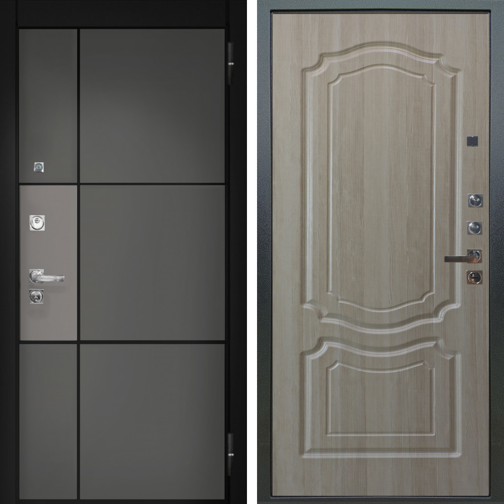 Входная дверь Termo-Door с терморазрывом и утеплением: внешняя отделка Арктика Графит, внутренняя отделка White слоновая кость.Толщина полотна 95 мм, цилиндровый замок, доставка и установка в Москве и МО, гарантия 1 год.