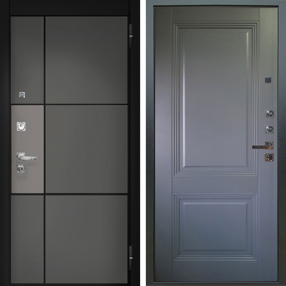 Входная дверь Шторм Графит SMART с внутренней отделкой Вертикаль Силк маус • Габаритные размеры: 2050x860 мм, 2050x960 мм • Металл 1.8мм. Черная шагрень • Внешнее покрытие: МДФ 12 мм. • Толщина полотна: 115 мм. • Толщина коробки: 120 мм. • Короб закрытого типа, утепленный • Уплотнитель: 3 контура • Два вертикальных ребра жесткости • ЭЛЕКТРОННЫЙ ЗАМОК НА ВЫБОР • Замок дополнительный: Гардиан 6001 • Врезная броненакладка • Пазы на коробке под доборы • Независимая задвижка есть • Фурнитура ЧЕРНАЯ