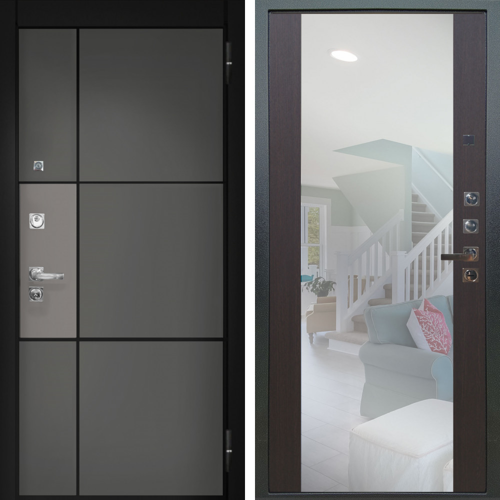 Входная дверь Termo-Door с утеплением: внешняя отделка Орегон Венге, внутренняя отделка Зеркало Триумф Царга лиственница 4500 / 5500.Толщина полотна 100 мм., цилиндровый замок, доставка и установка в Москве и МО, гарантия 1 год.