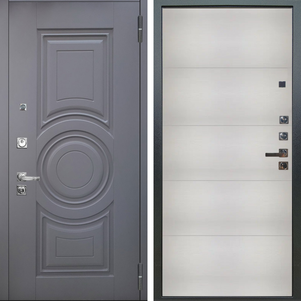 Входная дверь Termo-Door с терморазрывом и утеплением: внешняя отделка Премиум Винорит Grey, внутренняя отделка Гранд Белый софт.Толщина полотна 95 мм, цилиндровый замок, доставка и установка в Москве и МО, гарантия 1 год.