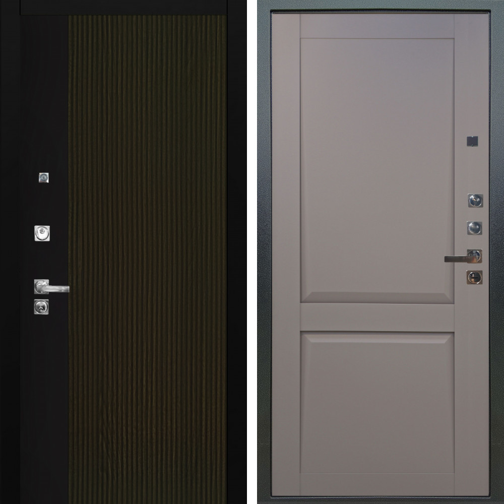 Входная дверь Termo-Door с утеплением: внешняя отделка Авангард Бетон, внутренняя отделка Flat Черный кварц.Толщина полотна 100 мм., цилиндровый замок, доставка и установка в Москве и МО, гарантия 1 год.