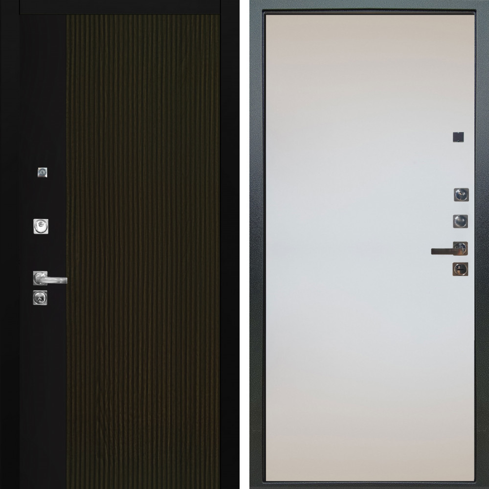 Полотно - два листа металла, Замковая зона усилена металлическим бронепакетом. Ответная часть замковой зоны усилена стальным швеллером,что сводит к минимуму попытки вскрытия двери методом отжима. Бронепластины на коробе в зоне входа ригелей замка. 2 специальных армированных прута внутри конструкции надёжно защитят дверь от вскрытия килечным ножом.