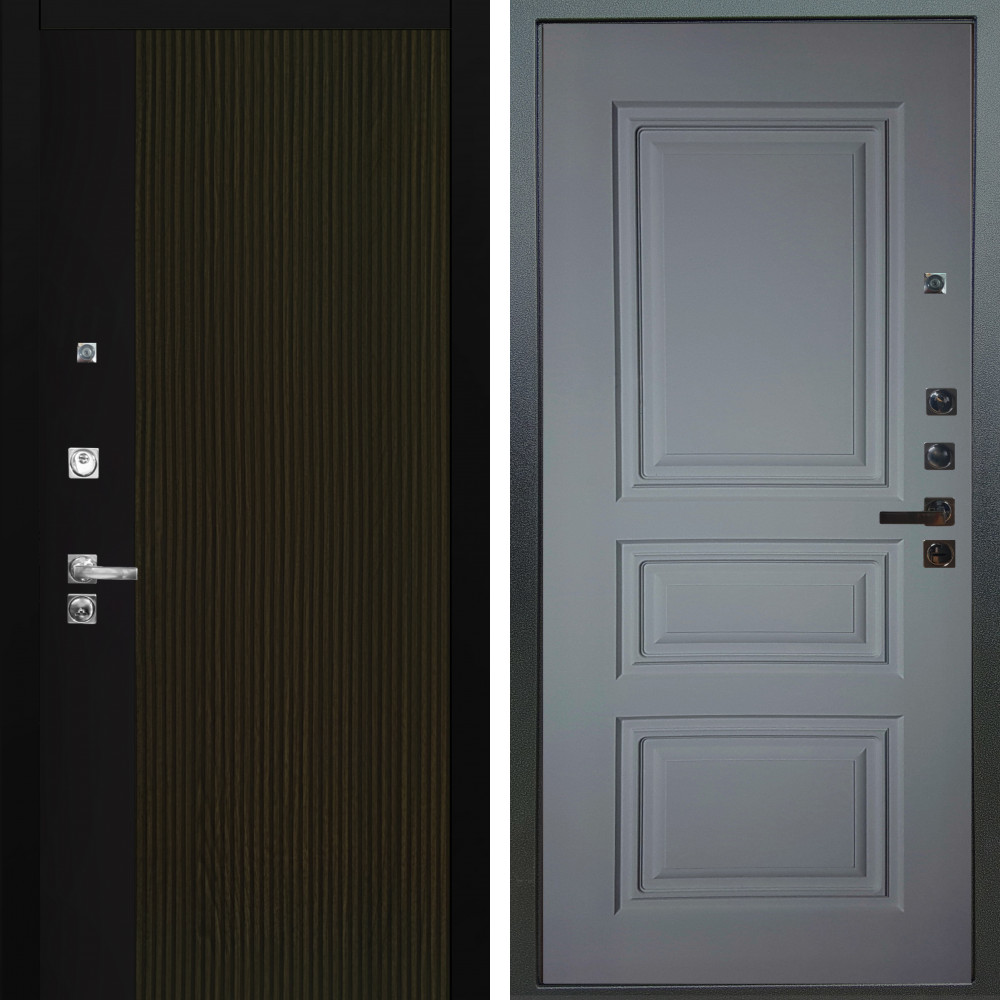 Входная дверь Termo-Door с утеплением: внешняя отделка Смарт Геометрия, внутренняя отделка Мадрид Дуб.Толщина полотна 95 мм, цилиндровый замок, доставка и установка в Москве и МО, гарантия 1 год.