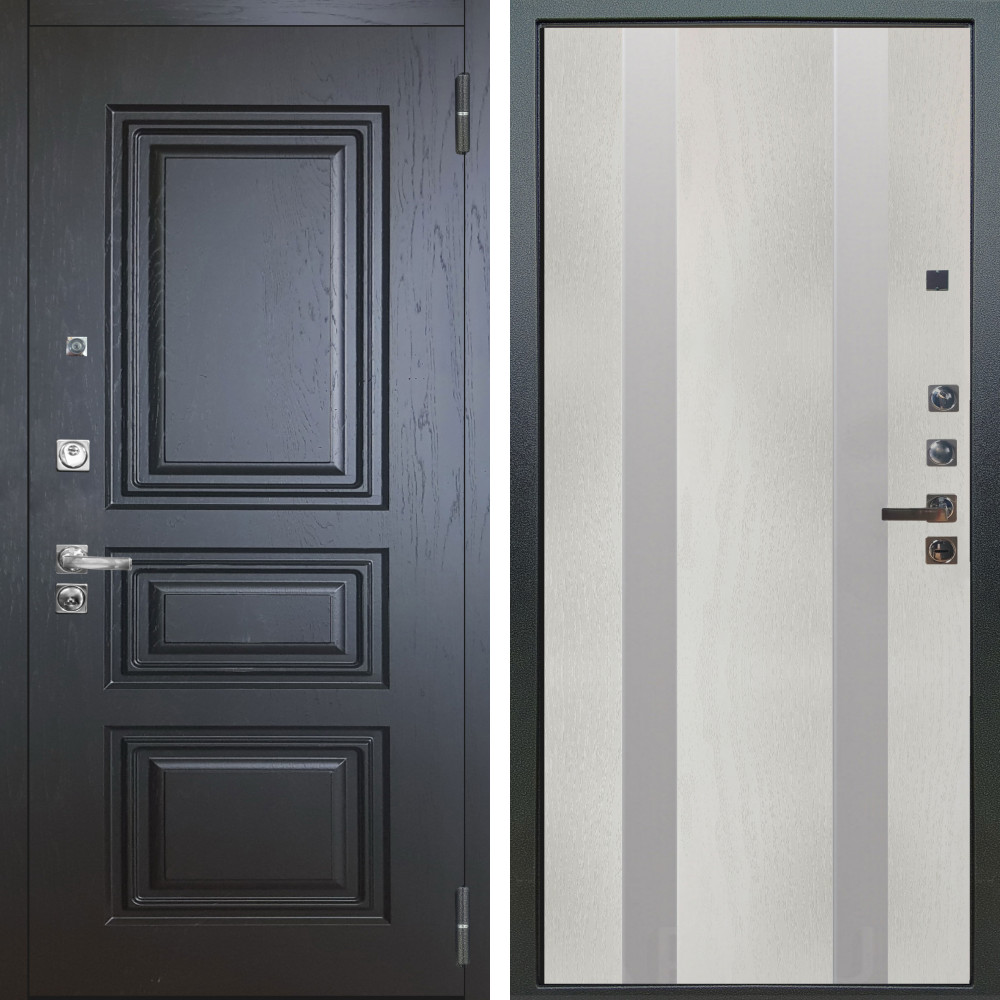 Входная дверь Лабиринт Классик шагрень черная с зеркалом Панорама - Белый софт