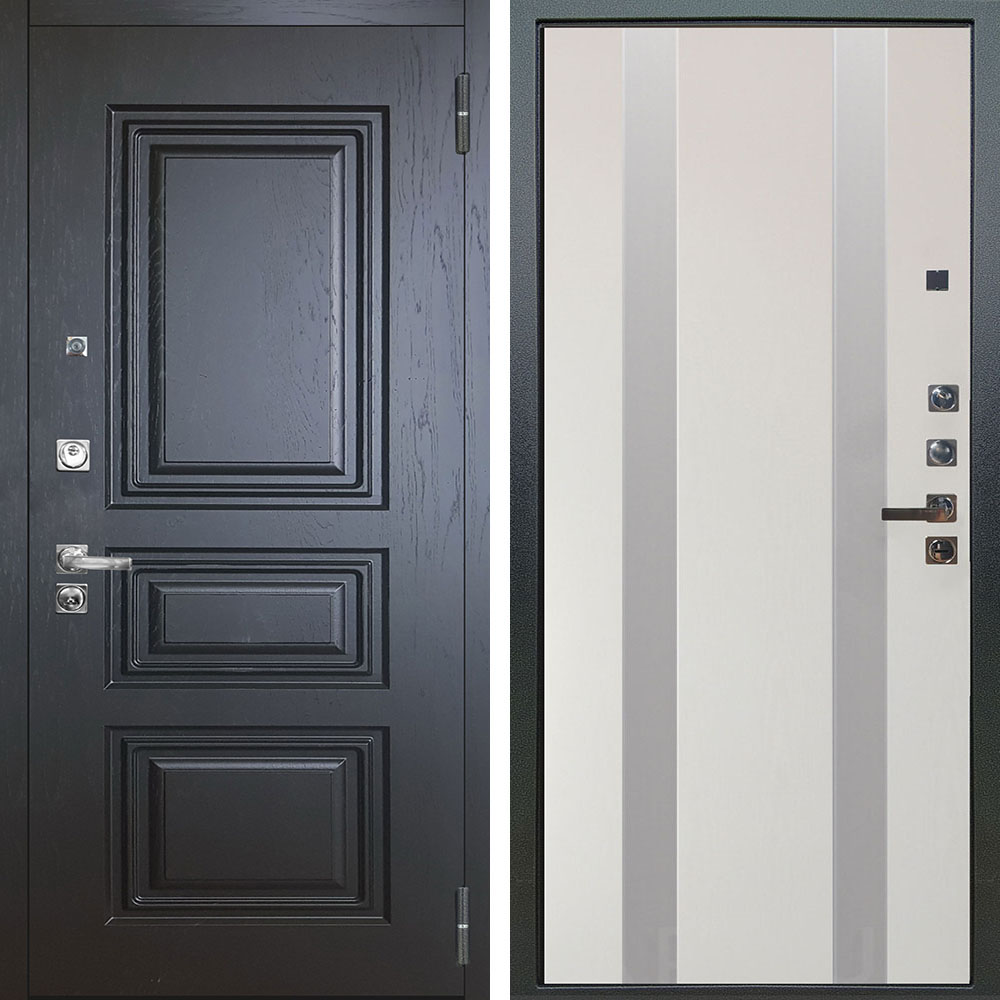 Входная дверь Бульдорс TRUST MASS МР Черный муар металлик D-4/Белый софт 9S-164