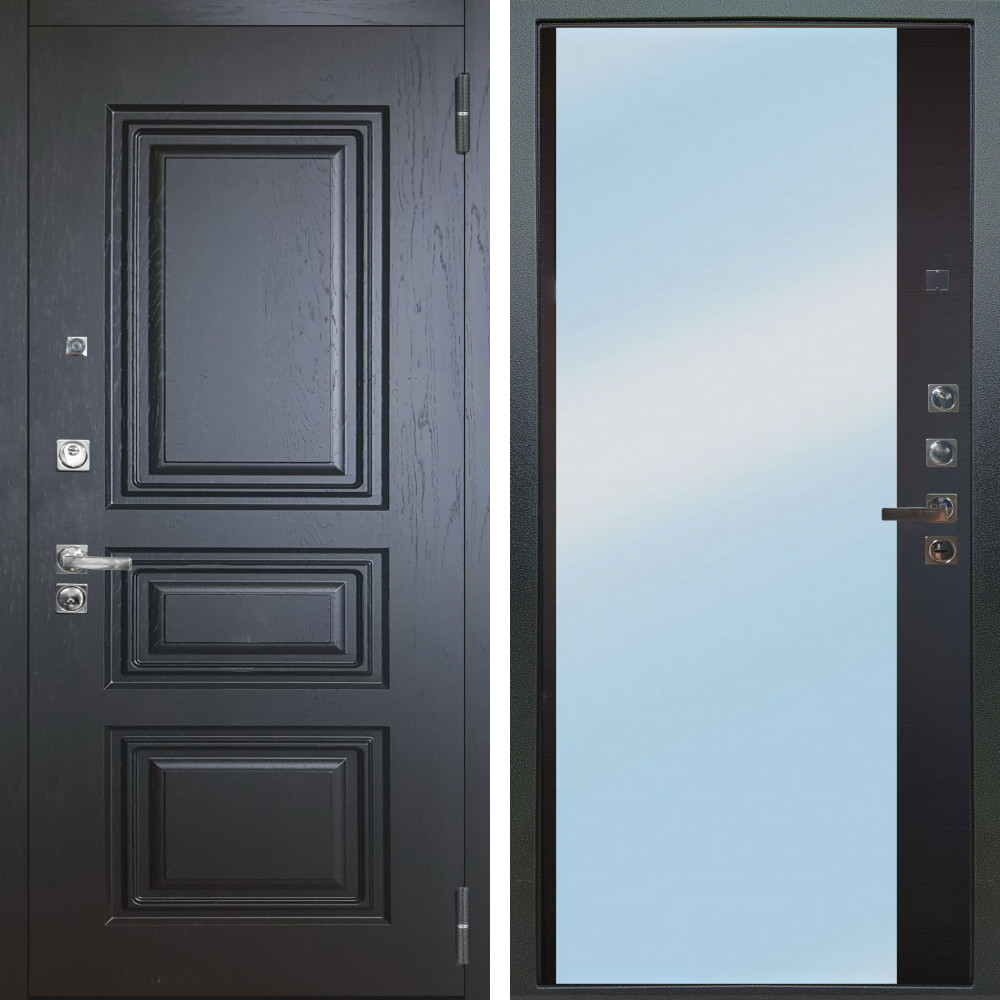 Входная дверь Престиж СО Стеклом SMART с внутренней отделкой Зеркало беленый дуб • Габаритные размеры: 2050x860 мм, 2050x960 мм • Металл 1.8мм. Черная шагрень • Внешнее покрытие: МДФ 12 мм. • Толщина полотна: 115 мм. • Толщина коробки: 120 мм. • Короб закрытого типа, утепленный • Уплотнитель: 3 контура • Два вертикальных ребра жесткости • ЭЛЕКТРОННЫЙ ЗАМОК НА ВЫБОР • Замок дополнительный: Гардиан 6001 • Врезная броненакладка • Пазы на коробке под доборы • Независимая задвижка есть • Фурнитура ЧЕРНАЯ