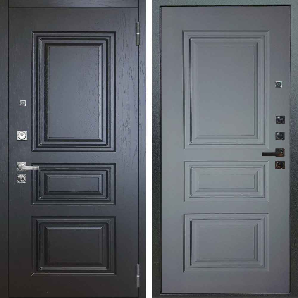 Входная дверь Termo-Door с утеплением: внешняя отделка Квантум Грей, внутренняя отделка Flat Белый софт.Толщина полотна 100 мм., цилиндровый замок, доставка и установка в Москве и МО, гарантия 1 год.