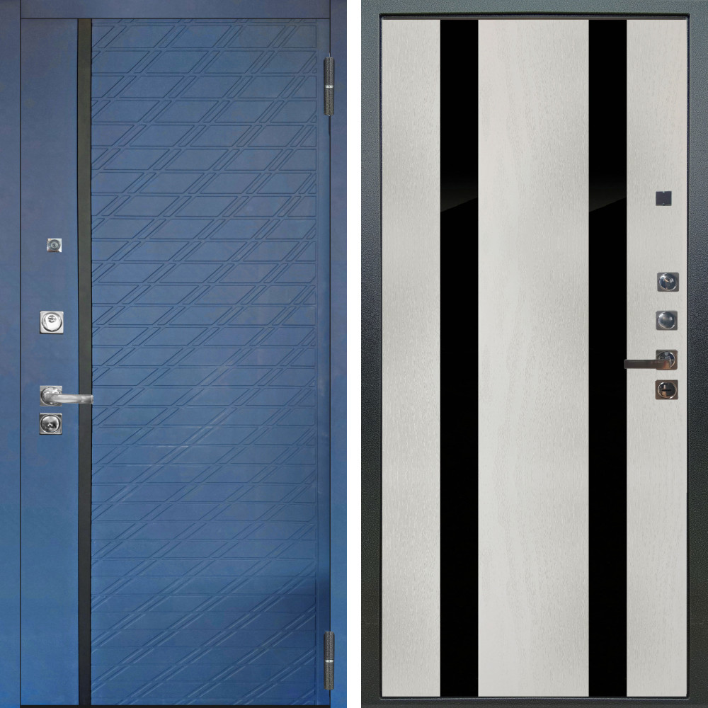 Входная дверь Аргус ЛЮКС 3К ПРО Тори Синий софт + Дуэт Белое дерево вставки Кензо