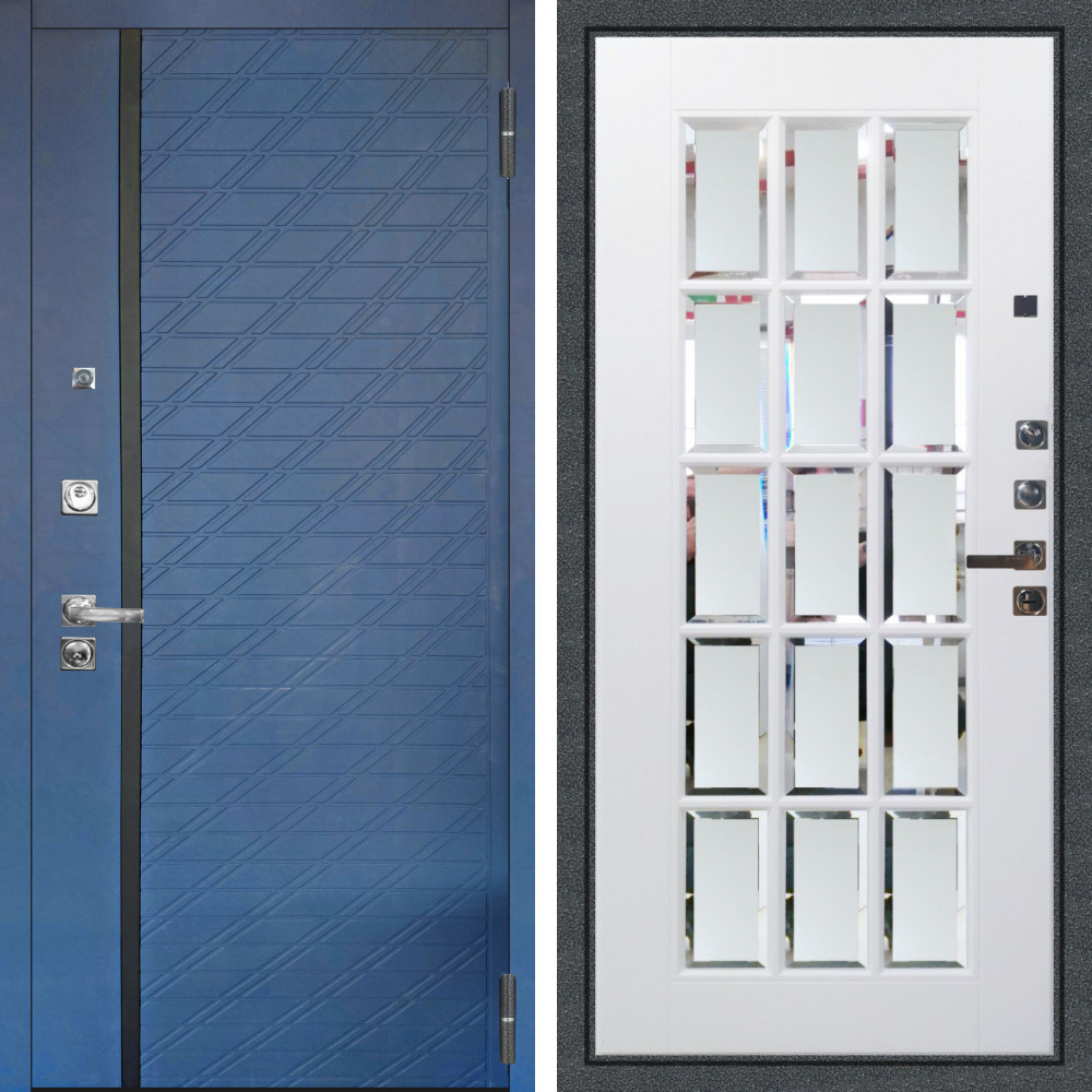 Входная дверь Аргус ЛЮКС 3К ПРО Тори Синий софт + Мэрелин Софт милк с фацетом и пескоструем