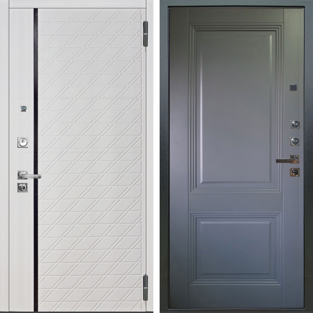 Входная дверь Termo-Door с утеплением: внешняя отделка Simple White, внутренняя отделка Зеркало Триумф дуб.Толщина полотна 100 мм., цилиндровый замок, доставка и установка в Москве и МО, гарантия 1 год.