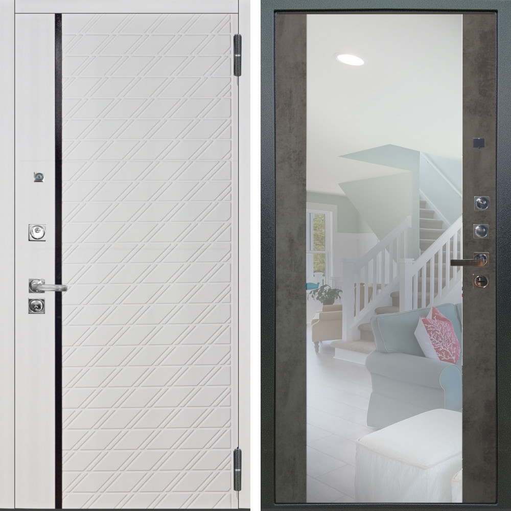 Входная дверь Termo-Door с утеплением: внешняя отделка Орегон White, внутренняя отделка Зеркало Триумф Белый софт.Толщина полотна 100 мм., цилиндровый замок, доставка и установка в Москве и МО, гарантия 1 год.