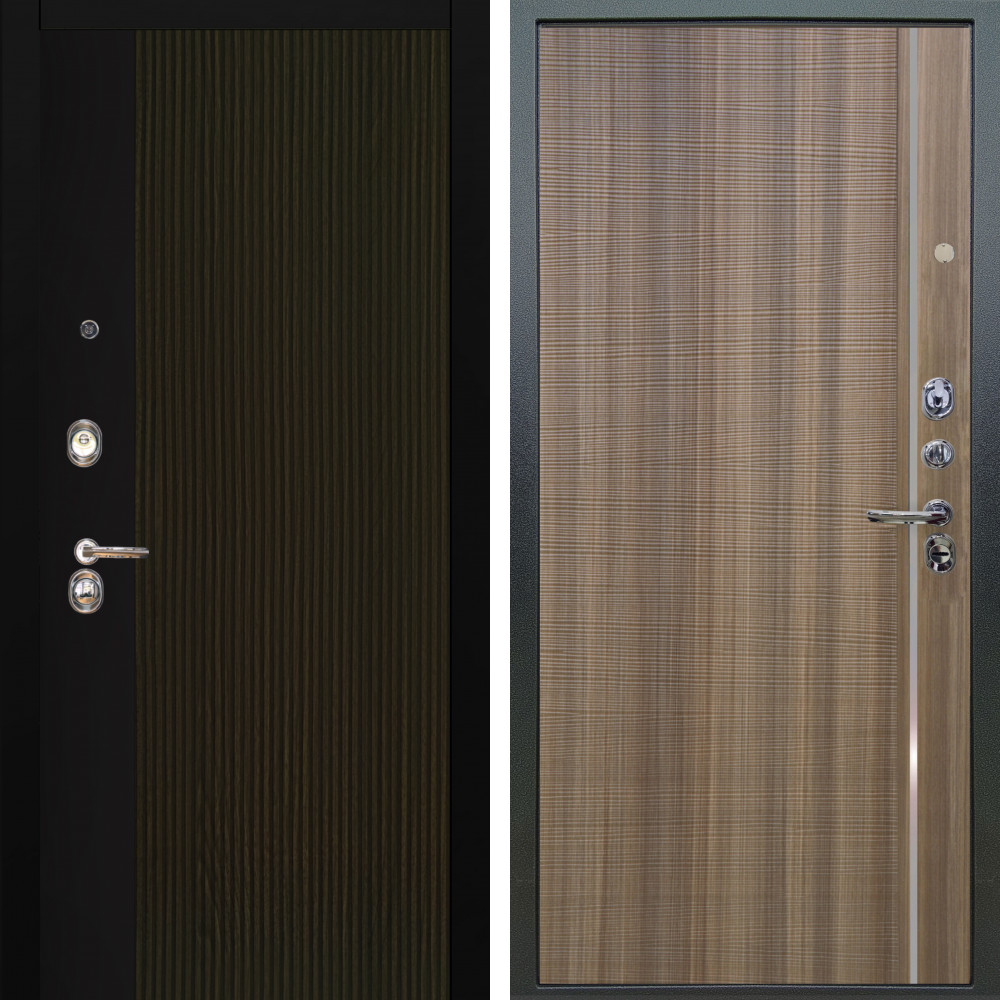 Входная дверь Авангард с внутренней отделкой ФЛ-119 силк маус • Габаритные размеры: 2050x860 мм, 2050x960 мм • Металл 1.5мм. • Внешнее покрытие: МДФ 12 мм. • Цвет покрытия: Орех коньяк кантри/Черный кварц. • Толщина полотна: 100 мм. • Толщина коробки: 105 мм. • Окрас короба:Черная шагрень. • Короб закрытого типа, утепленный. • Уплотнитель: 3 контура. • Два вертикальных ребра жесткости. • Замок основной: Guardian 3211 (цилиндровый). • Замок дополнительный: Guardian 300 • Врезная броненакладка. • Независимая задвижка есть. • Фурнитура Черная.