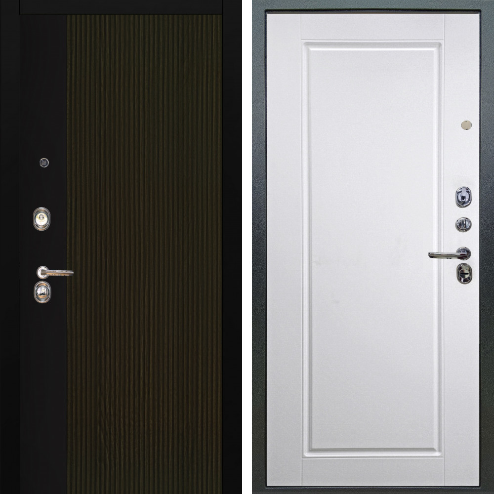 Входная дверь Квадро с внутренней отделкой Зеркало панорама Графит • Габаритные размеры: 2050x860 мм, 2050x960 мм • Металл 1.5мм. • Внешнее покрытие: МДФ 12 мм. • Цвет покрытия: Черный кварц. • Толщина полотна: 100 мм. • Толщина коробки: 105 мм. • Окрас короба:Черная шагрень. • Короб закрытого типа, утепленный. • Уплотнитель: 3 контура. • Два вертикальных ребра жесткости. • Замок основной: Guardian 3211 (цилиндровый). • Замок дополнительный: Guardian 300 • Врезная броненакладка. • Независимая задвижка есть. • Фурнитура Черная.