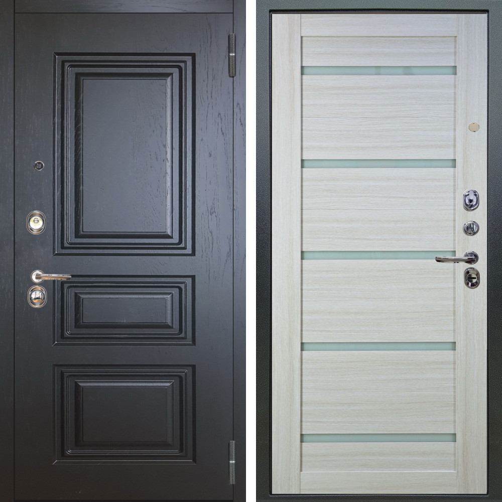 Входная дверь Termo-Door с утеплением: внешняя отделка Смарт Матрикс, внутренняя отделка Зеркало Фацет Черный кварц+тонировка серая.Толщина полотна 95 мм, цилиндровый замок, доставка и установка в Москве и МО, гарантия 1 год.