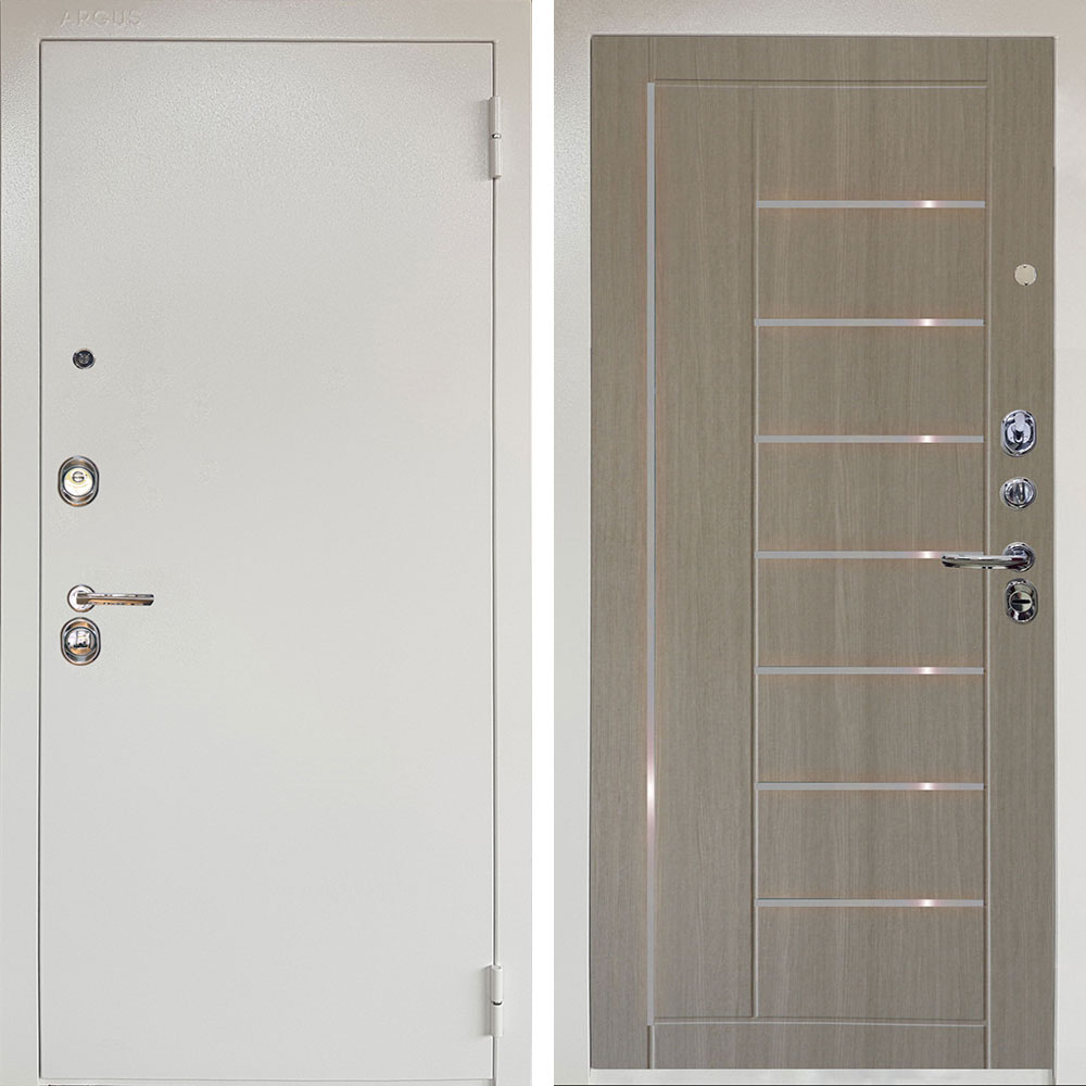 Входная дверь Аргус Люкс 3к Снежно белый Фриза капучино