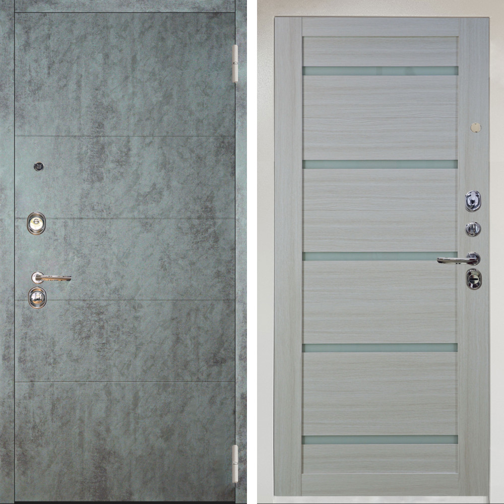 Входная дверь Аргус ЛЮКС 3К Снежно-белый Агат Темный бетон + Александра Белая лиственница