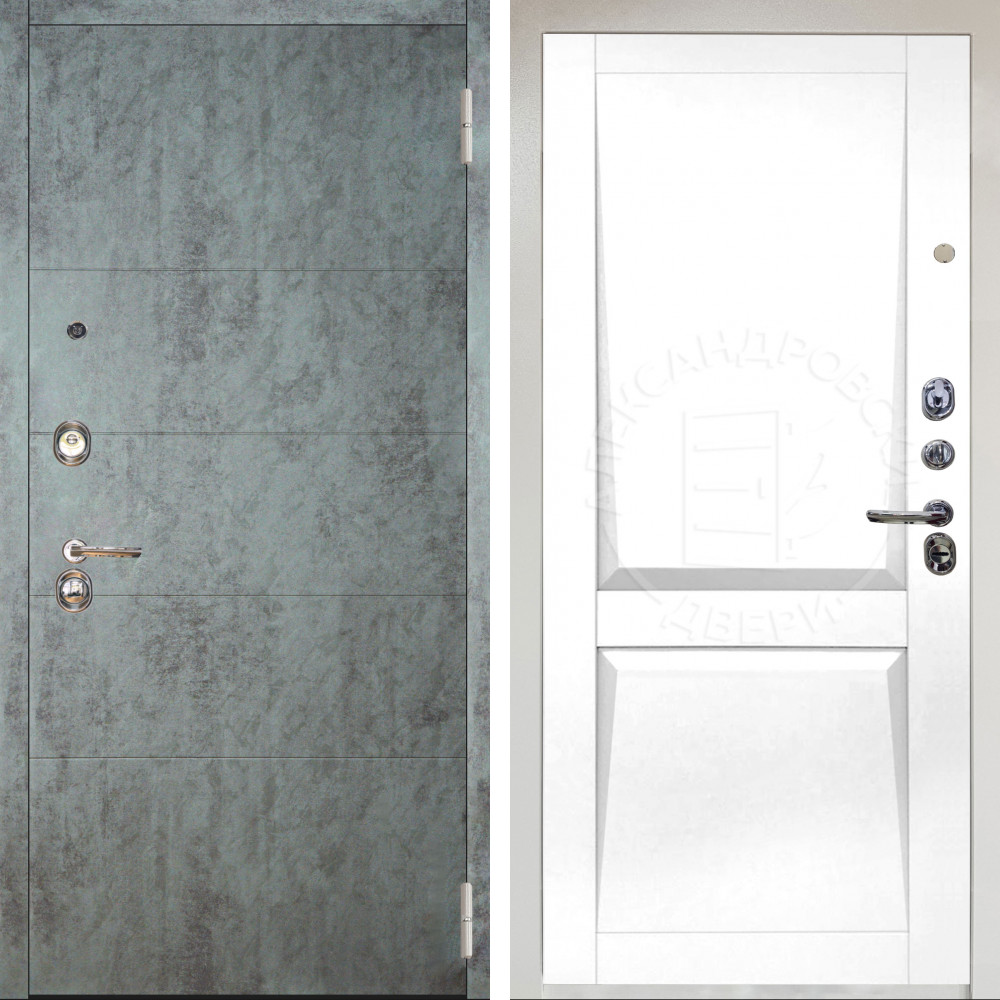 Входная дверь Аргус ЛЮКС 3К Снежно-белый Агат Темный бетон + Ариана Белая эмаль