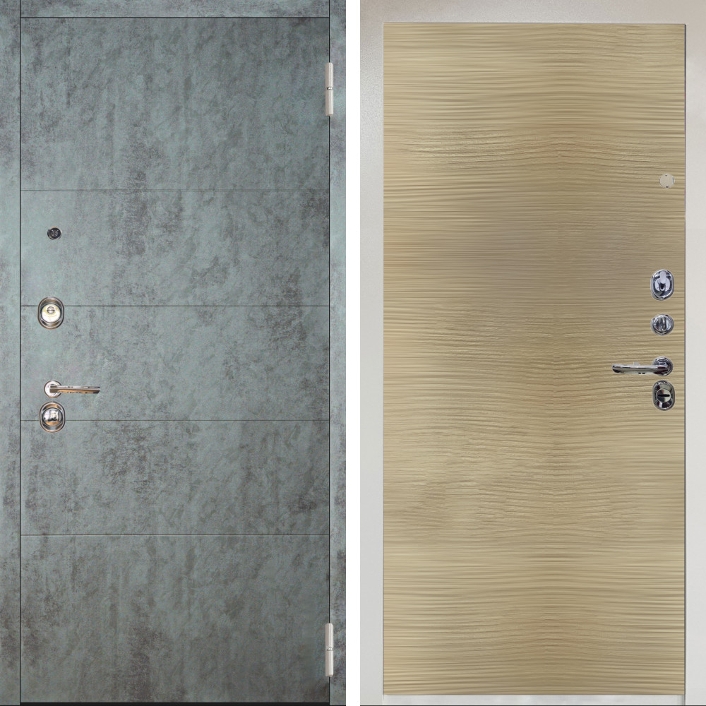 Входная дверь Аргус ЛЮКС 3К Снежно-белый Агат Темный бетон + Элегант Дорс светлый горизонт