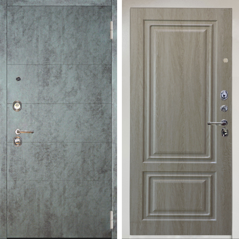 Входная дверь Termo-Door с утеплением: внешняя отделка Спейс Бетон Патина, внутренняя отделка Зеркало Фацет Grey софт.Толщина полотна 100 мм., цилиндровый замок, доставка и установка в Москве и МО, гарантия 1 год.