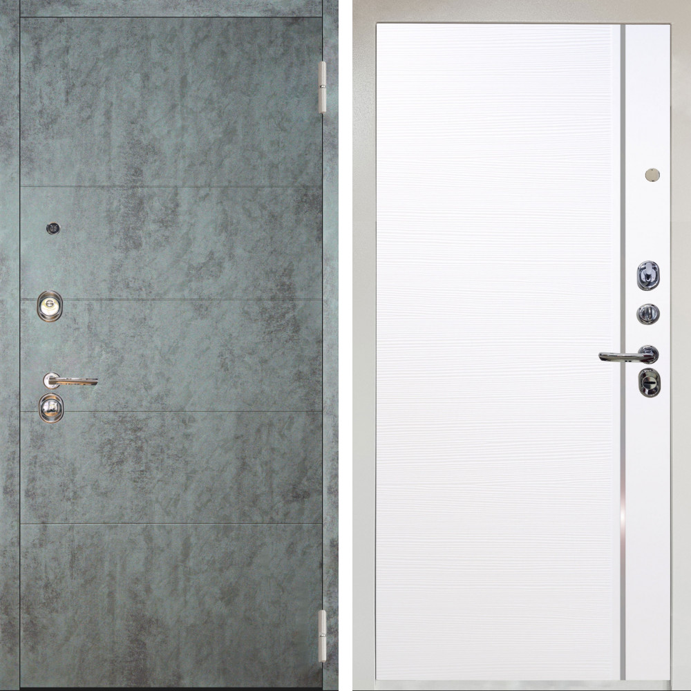 Входная дверь Аргус ЛЮКС 3К Снежно-белый Агат Темный бетон + Гауда Роял Вуд Белый