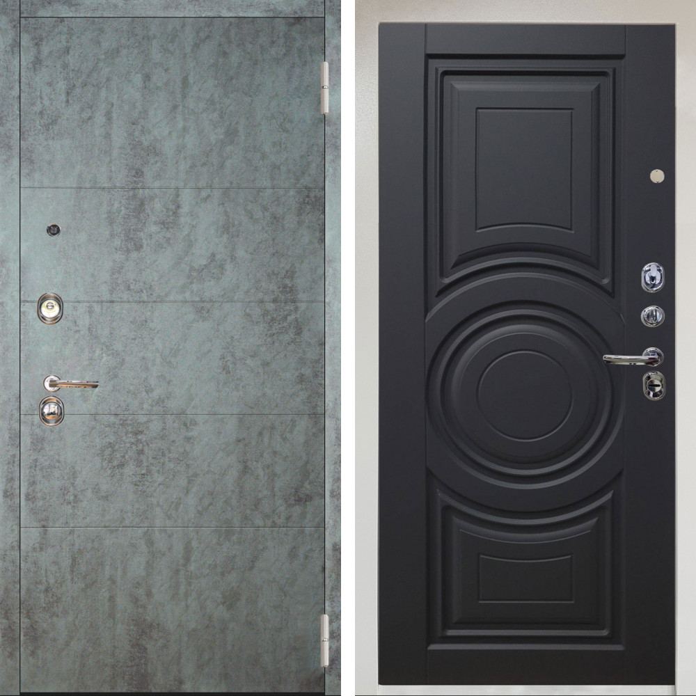 Входная дверь Termo-Door с утеплением: внешняя отделка Геометрия Бетон, внутренняя отделка Зеркало дуб.Толщина полотна 100 мм., цилиндровый замок, доставка и установка в Москве и МО, гарантия 1 год.