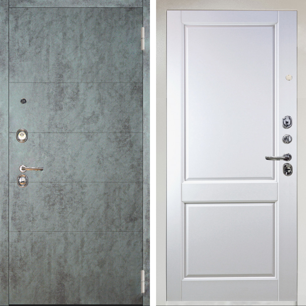 Входная дверь Аргус ЛЮКС 3К Снежно-белый Агат Темный бетон + Соренто Белая эмаль