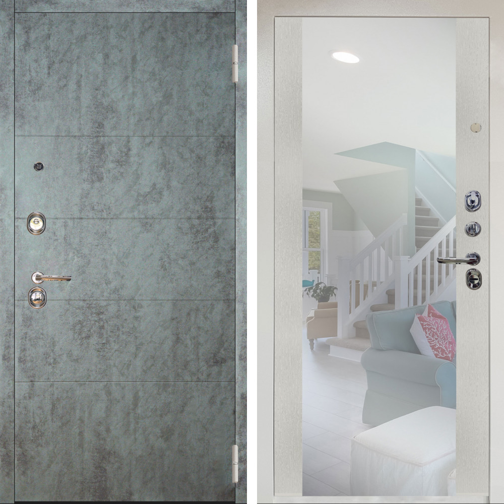 Входная дверь Аргус ЛЮКС 3К Снежно-белый Агат Темный бетон + Вояж Белое дерево