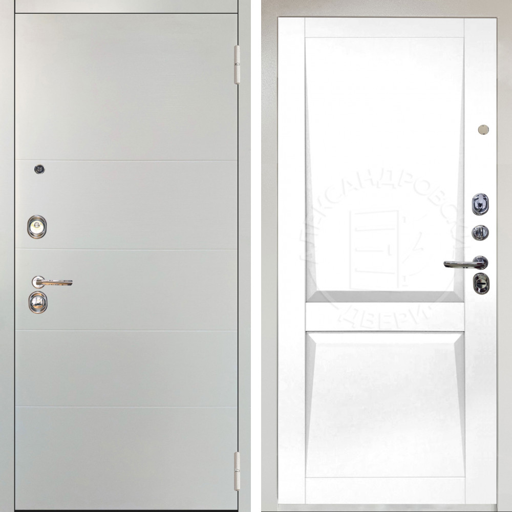 Входная дверь Аргус ЛЮКС 3К Снежно-белый Агат Вельвет белый горизонт + Ариана Белая эмаль