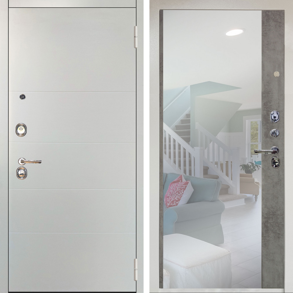 Входная дверь Аргус ЛЮКС 3К Снежно-белый Агат Вельвет белый горизонт + Магнум Светлый бетон