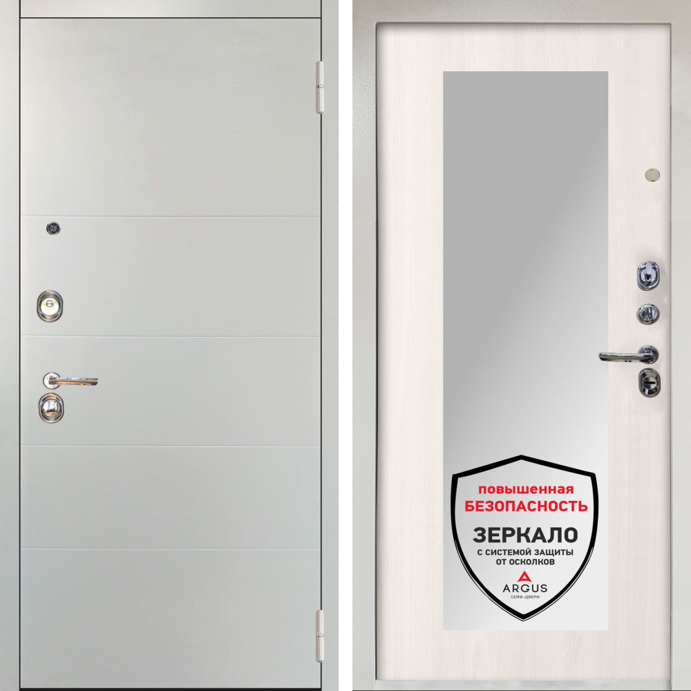 Входная дверь Аргус ЛЮКС 3К Снежно-белый Агат Вельвет белый горизонт + Милли Ларче светлый
