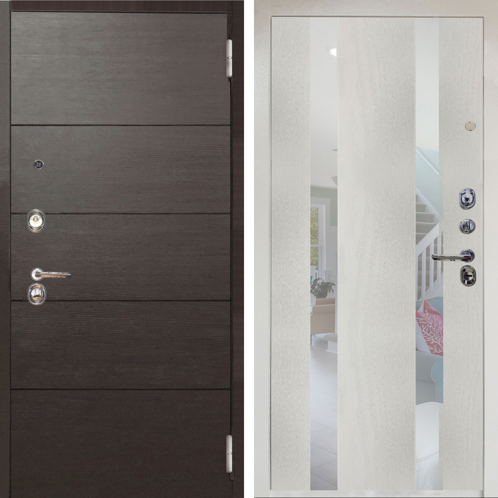 Входная дверь Аргус ЛЮКС 3К Снежно-белый Агат венге горизонт + Дуэт Белое дерево вставки Николь