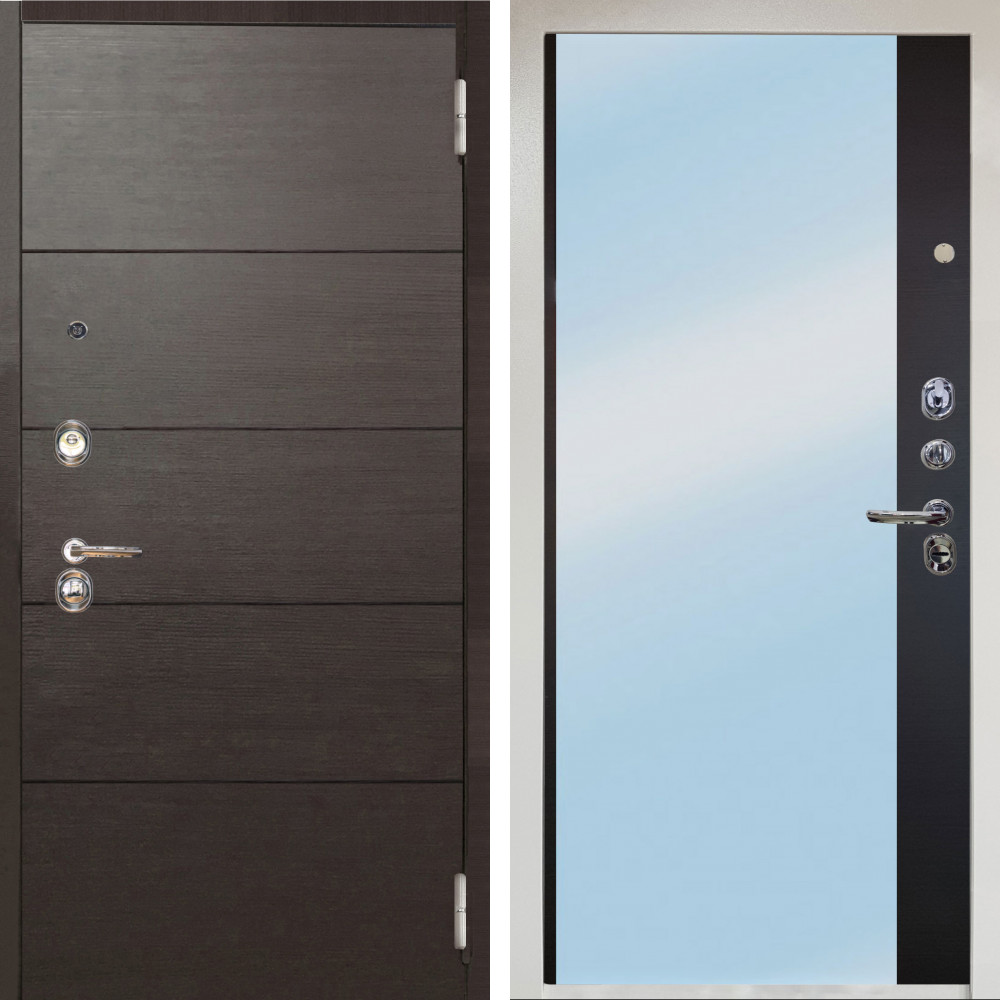Входная дверь Termo-Door с утеплением: внешняя отделка Тренд Black, внутренняя отделка Зеркало Триумф венге.Толщина полотна 100 мм., цилиндровый замок, доставка и установка в Москве и МО, гарантия 1 год.