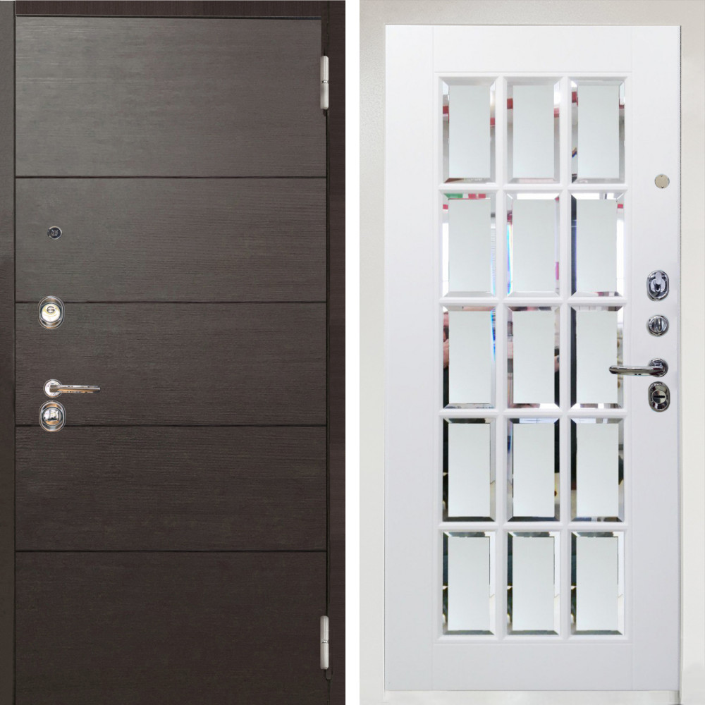 Входная дверь Аргус ЛЮКС 3К Снежно-белый Агат венге горизонт + Мэрелин Софт милк с фацетом и пескоструем