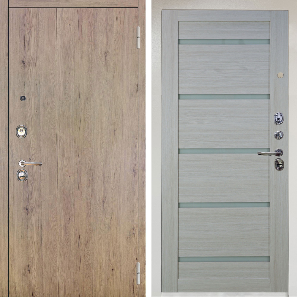 Входная дверь Termo-Door с утеплением: внешняя отделка Геометрия Дуб, внутренняя отделка Марсель Grey софт.Толщина полотна 100 мм., цилиндровый замок, доставка и установка в Москве и МО, гарантия 1 год.