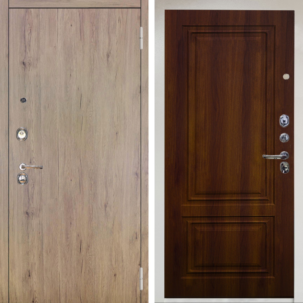 Входная дверь Гранит с внутренней отделкой Зеркало эко дуб • Габаритные размеры: 2050x860 мм, 2050x960 мм • Металл 1.5мм. • Внешнее покрытие: МДФ 12 мм. • Цвет покрытия: Орех коньяк кантри/Черный кварц. • Толщина полотна: 100 мм. • Толщина коробки: 105 мм. • Окрас короба:Черная шагрень. • Короб закрытого типа, утепленный. • Уплотнитель: 3 контура. • Два вертикальных ребра жесткости. • Замок основной: Guardian 3211 (цилиндровый). • Замок дополнительный: Guardian 300 • Врезная броненакладка. • Независимая задвижка есть. • Фурнитура Черная.