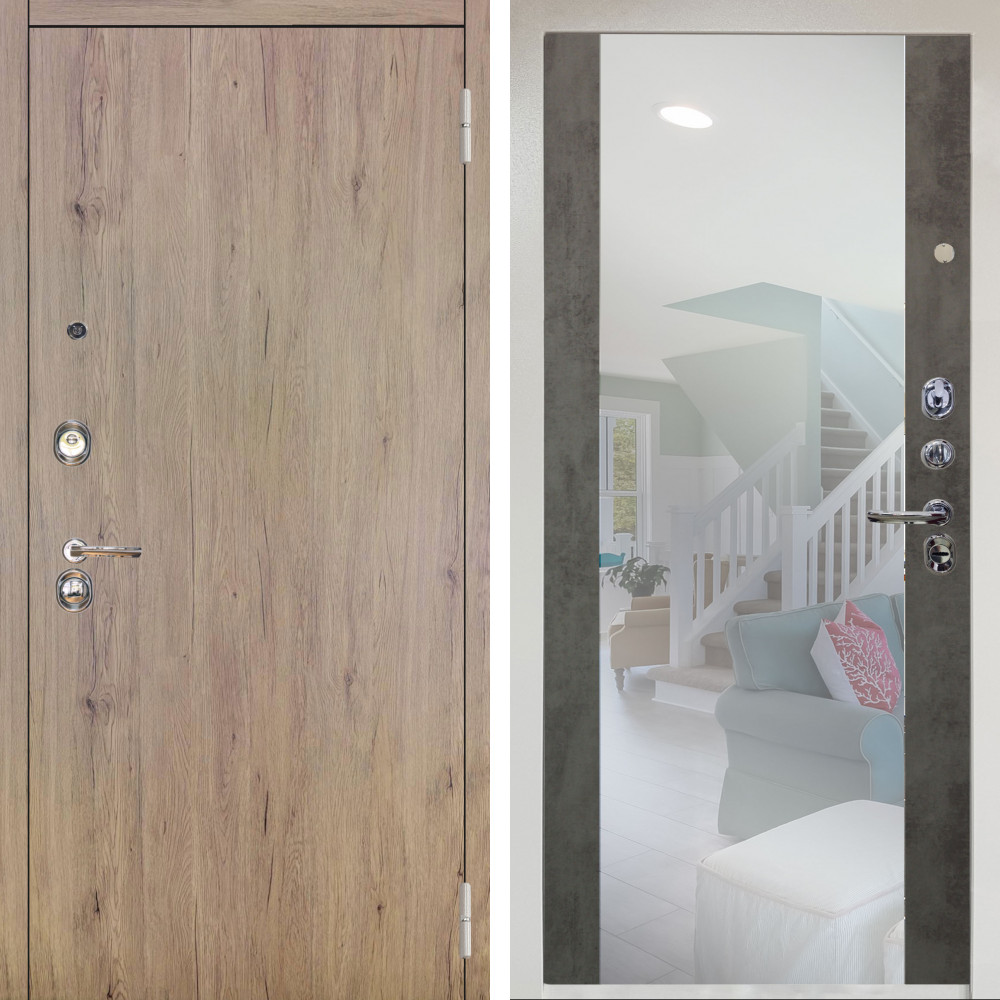 Входная дверь Аргус ЛЮКС 3К Снежно-белый Элегант Рустик соломенный + Вояж Светлый бетон