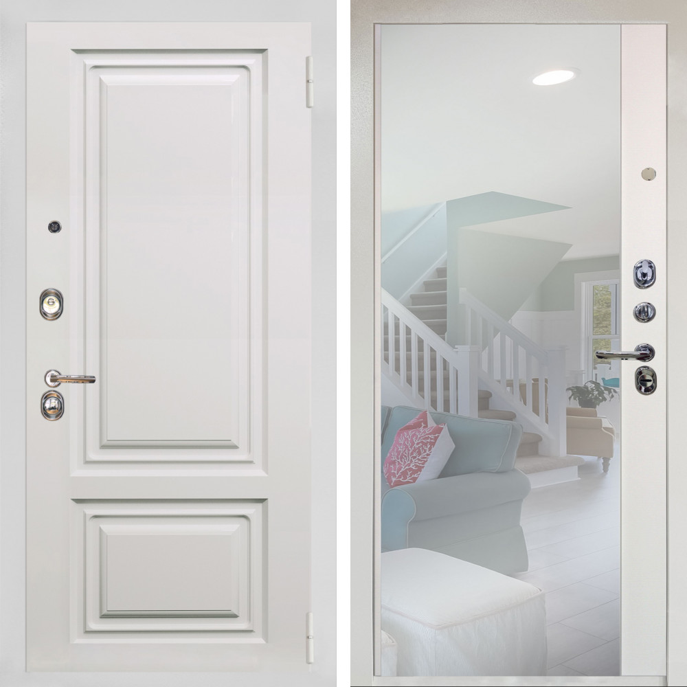 Входная дверь Termo-Door с терморазрывом и утеплением: внешняя отделка Премиум Веста Дуб, внутренняя отделка Зеркало Триумф Белый софт.Толщина полотна 95 мм, цилиндровый замок, доставка и установка в Москве и МО, гарантия 1 год.