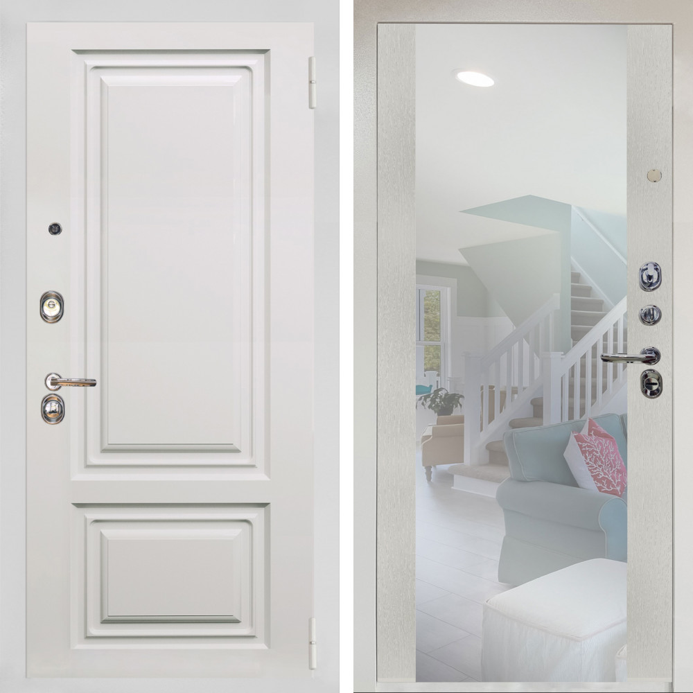 Входная дверь Termo-Door с терморазрывом и утеплением: внешняя отделка Сибирь Серебро Антик, внутренняя отделка Зеркало белый софт.Толщина полотна 95 мм, цилиндровый замок, доставка и установка в Москве и МО, гарантия 1 год.