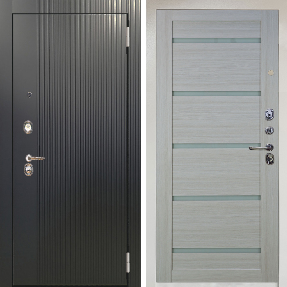 Входная дверь Termo-Door с утеплением: внешняя отделка Граунд Грей, внутренняя отделка Зеркало Слоновая кость.Толщина полотна 100 мм., цилиндровый замок, доставка и установка в Москве и МО, гарантия 1 год.