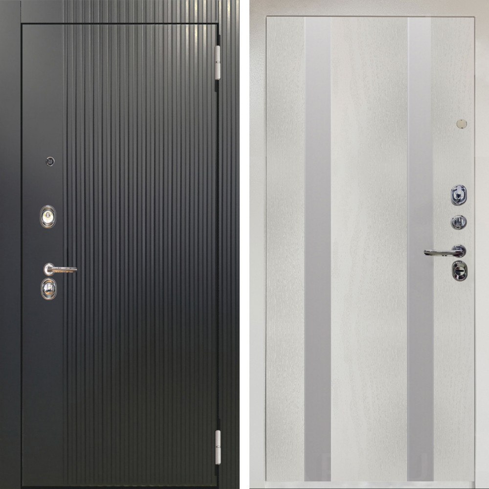 Входная дверь Аргус ЛЮКС 3К Снежно-белый Фрейда Черный кварц + Дуэт Белое дерево вставки Изабель