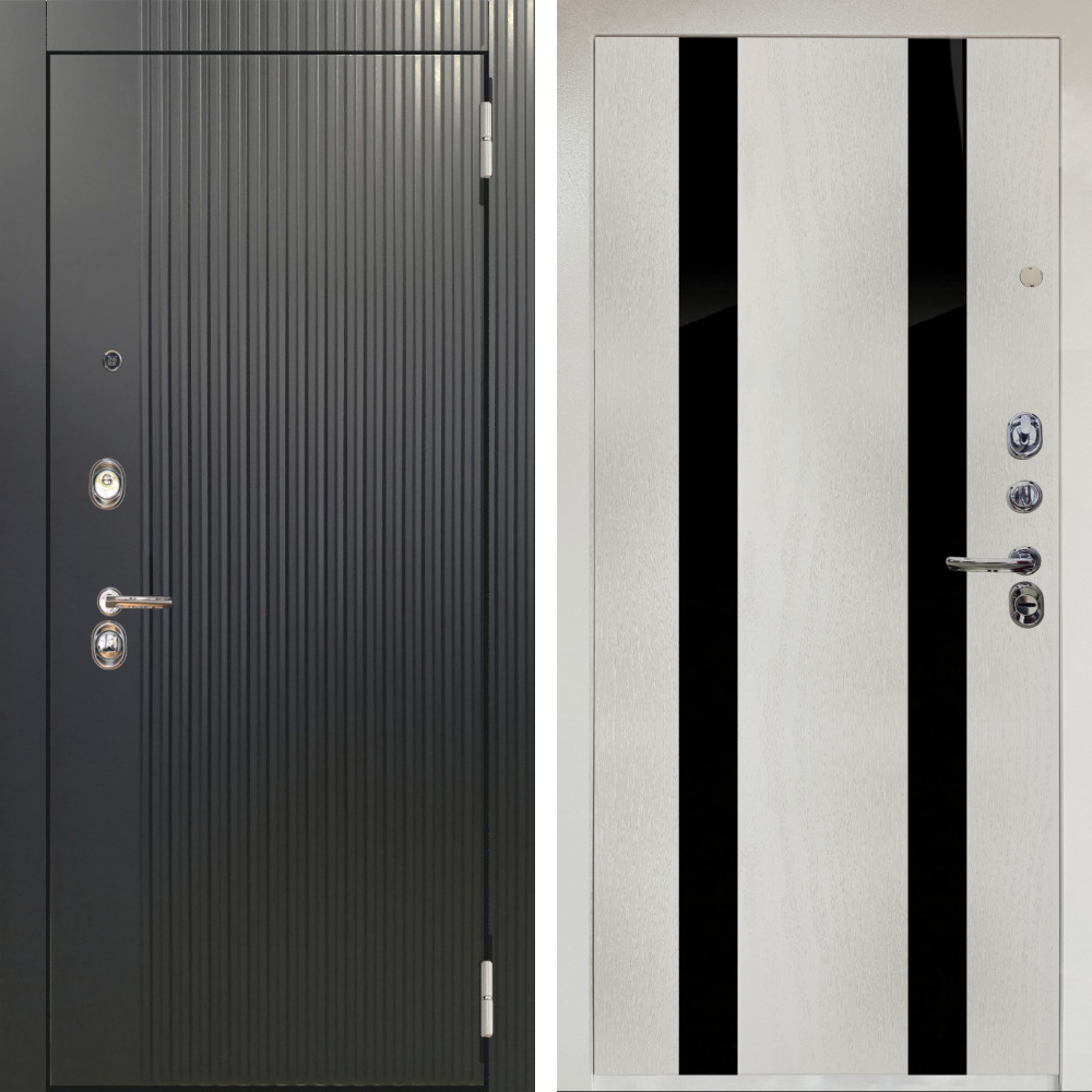 Входная дверь Аргус ЛЮКС 3К Снежно-белый Фрейда Черный кварц + Дуэт Белое дерево вставки кензо