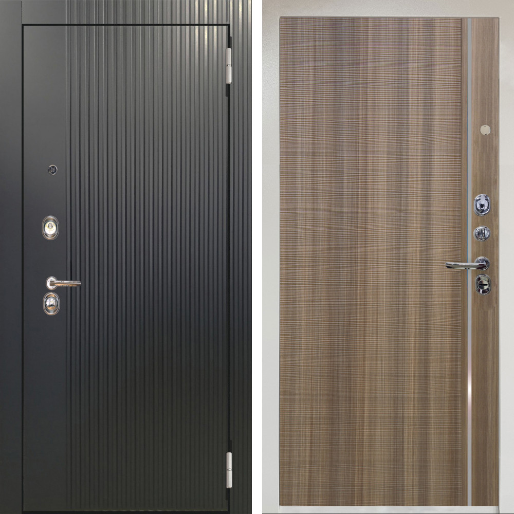 Входная дверь Termo-Door с утеплением: внешняя отделка Тренд Black, внутренняя отделка Мадрид Белый софт.Толщина полотна 100 мм., цилиндровый замок, доставка и установка в Москве и МО, гарантия 1 год.