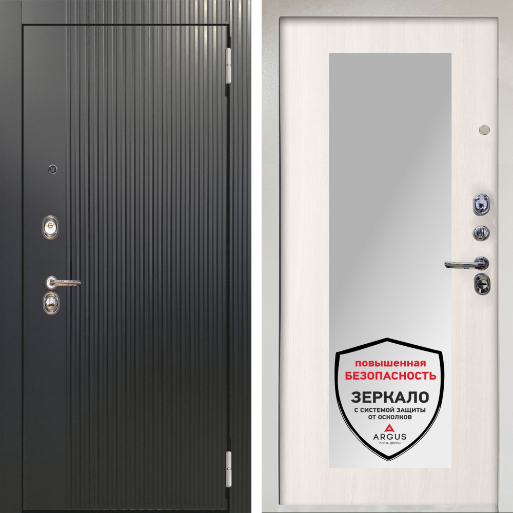 Входная дверь Аргус ЛЮКС 3К Снежно-белый Фрейда Черный кварц + Милли Ларче светлый