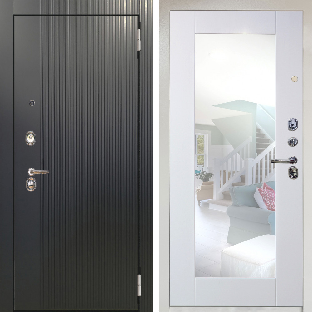 Входная дверь Аргус ЛЮКС 3К Снежно-белый Фрейда Черный кварц + Милли Роял вуд белый