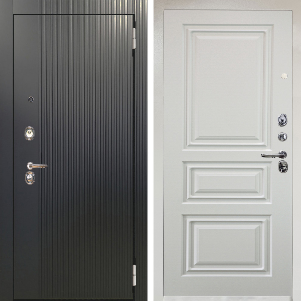 Входная дверь Аргус ЛЮКС 3К Снежно-белый Фрейда Черный кварц + Скиф Софт милк